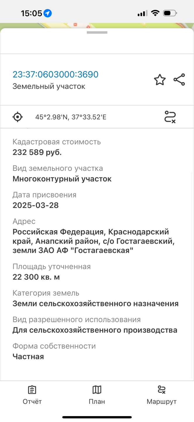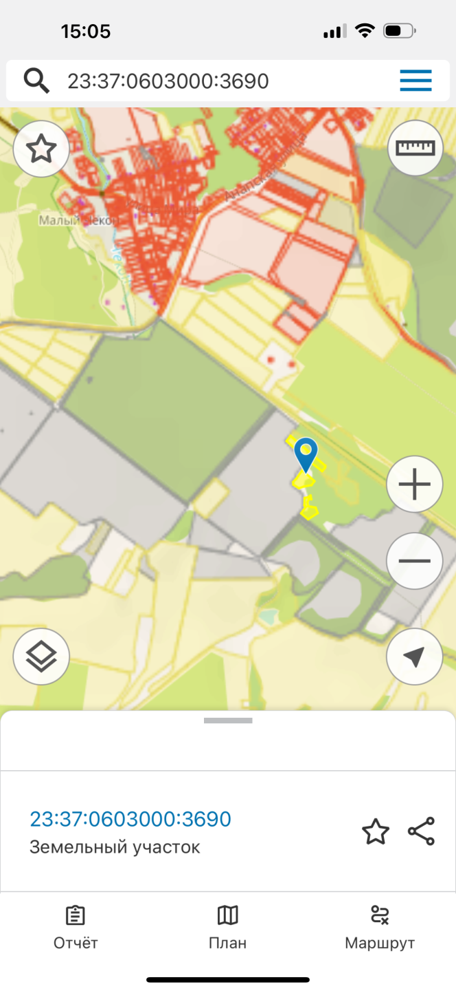 Кадастровый номер 23:37:0603000:3690Ссылка на объявление: https://rian-anapa.ru/land/saleland/8180