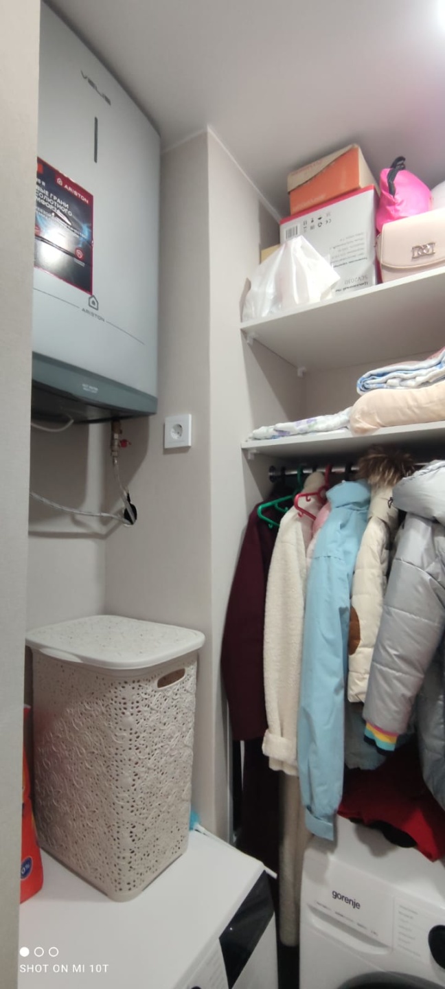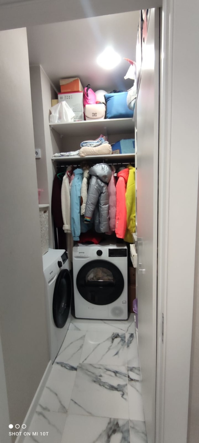 Так же в квартире есть кладовая комната, в ней установлен шкаф, и сделана зона хранения.
