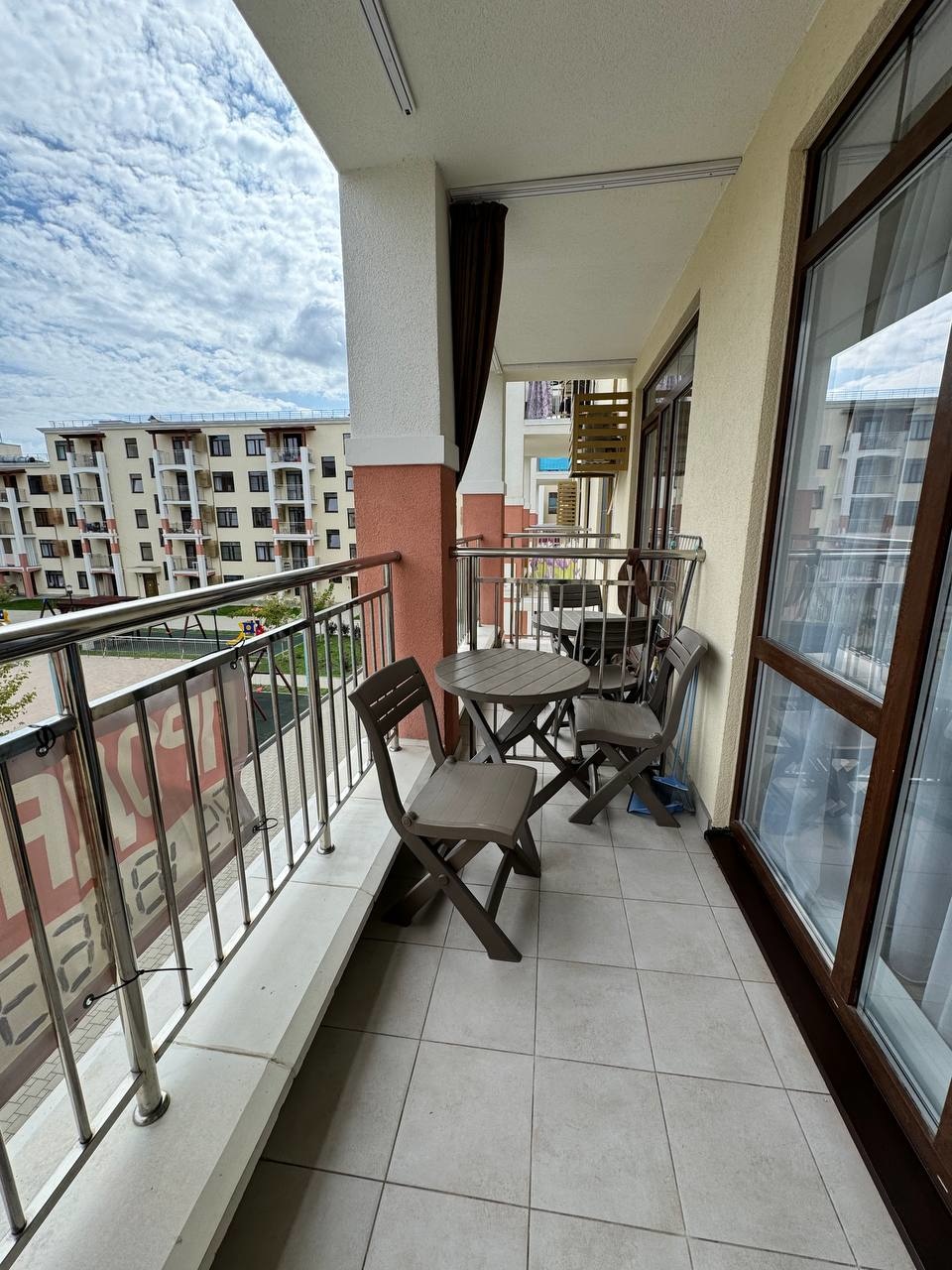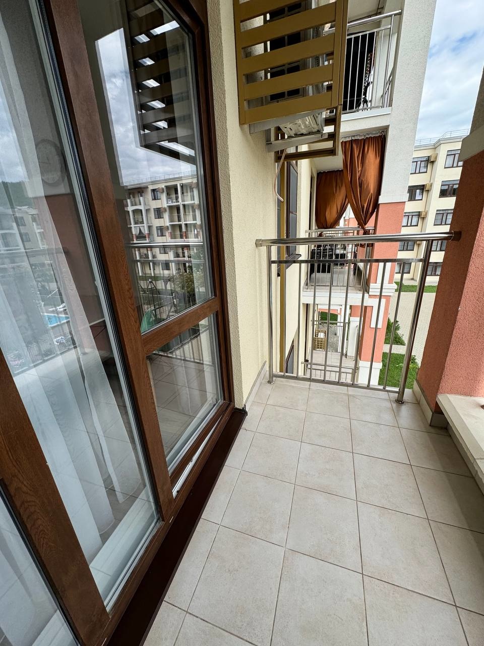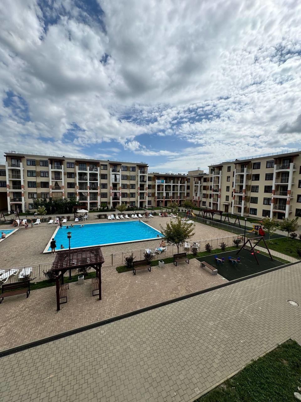 Квартира с видом на бассейн, в секции с лифтом.