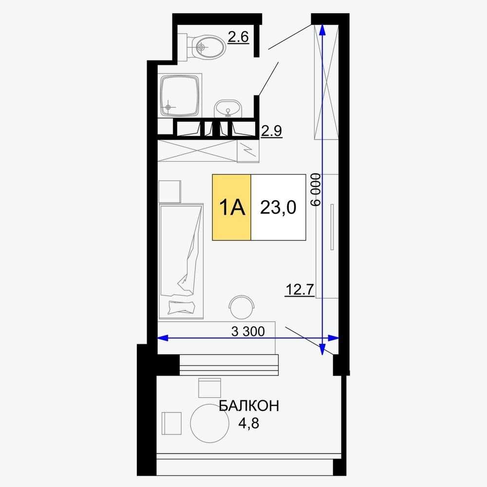 Общая площадь студии 23 кв м, в апартаментах будет выполнен ремонт под ключ.