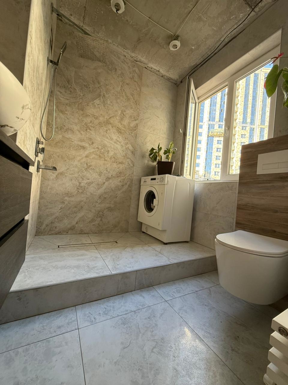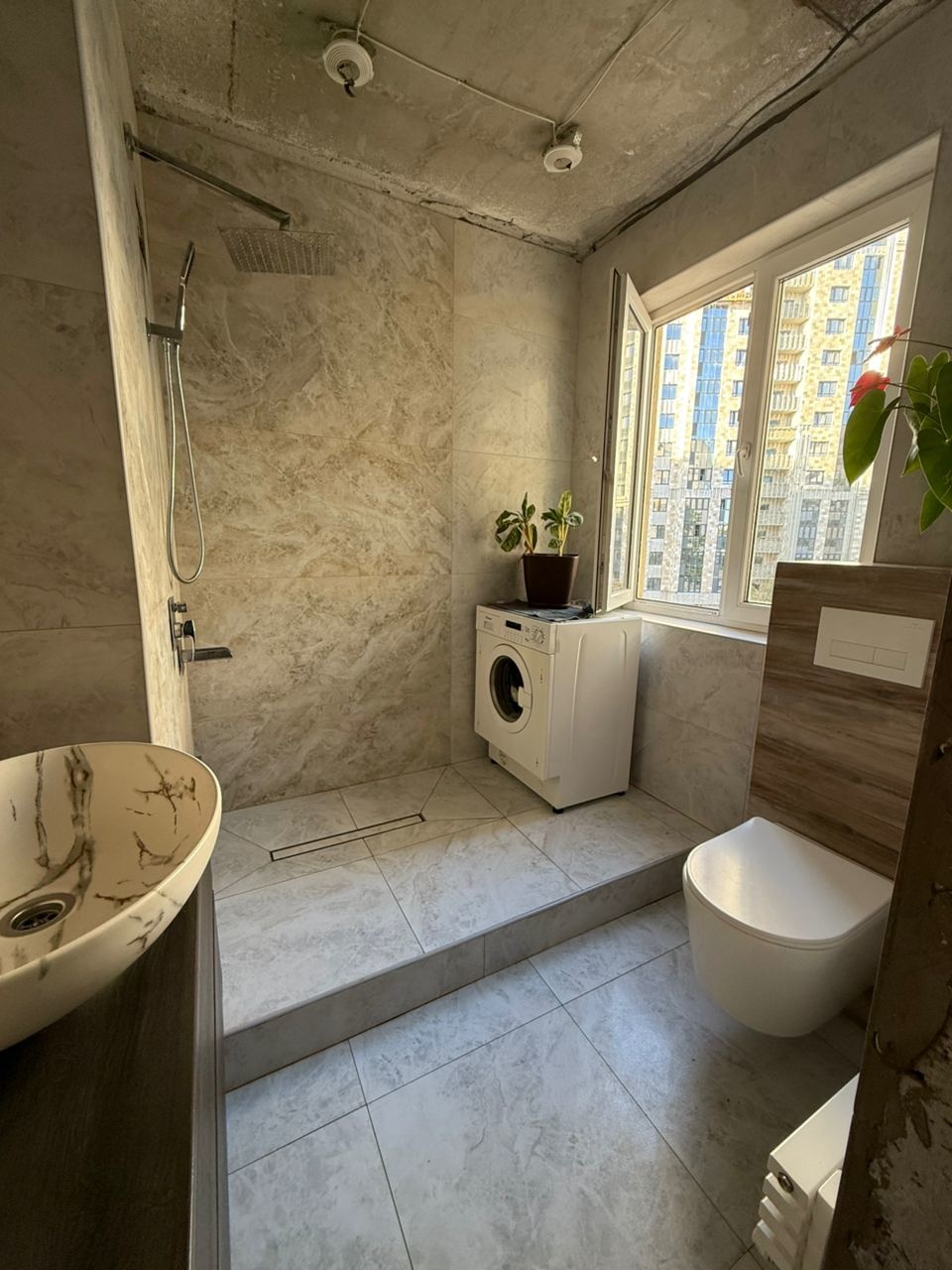 - Санузел: фирменная фурнитура, встроенный унитаз (с встроенным биде). ЭКСКЛЮЗИВ, полноценное окно в ванной, что дает дополнительный естественный свет.