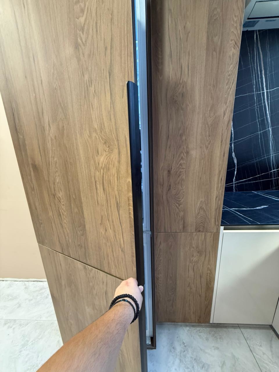 Кухня выполнена индивидуально под заказ. НРL столешница (вечная) ультратонкая. Встроенная раковина подствольного монтажа, шредер. Полностью вся фурнитура ВluеМах (оригинал). Духовой шкаф, встроенный холодильник. Пользоваться и прикасаться к кухне - одно удовольствие. Обои на кухне (под покраску). Кухонная зона вынесена на балконную часть, что дало возможность сделать евро двухкомнатную квартиру.