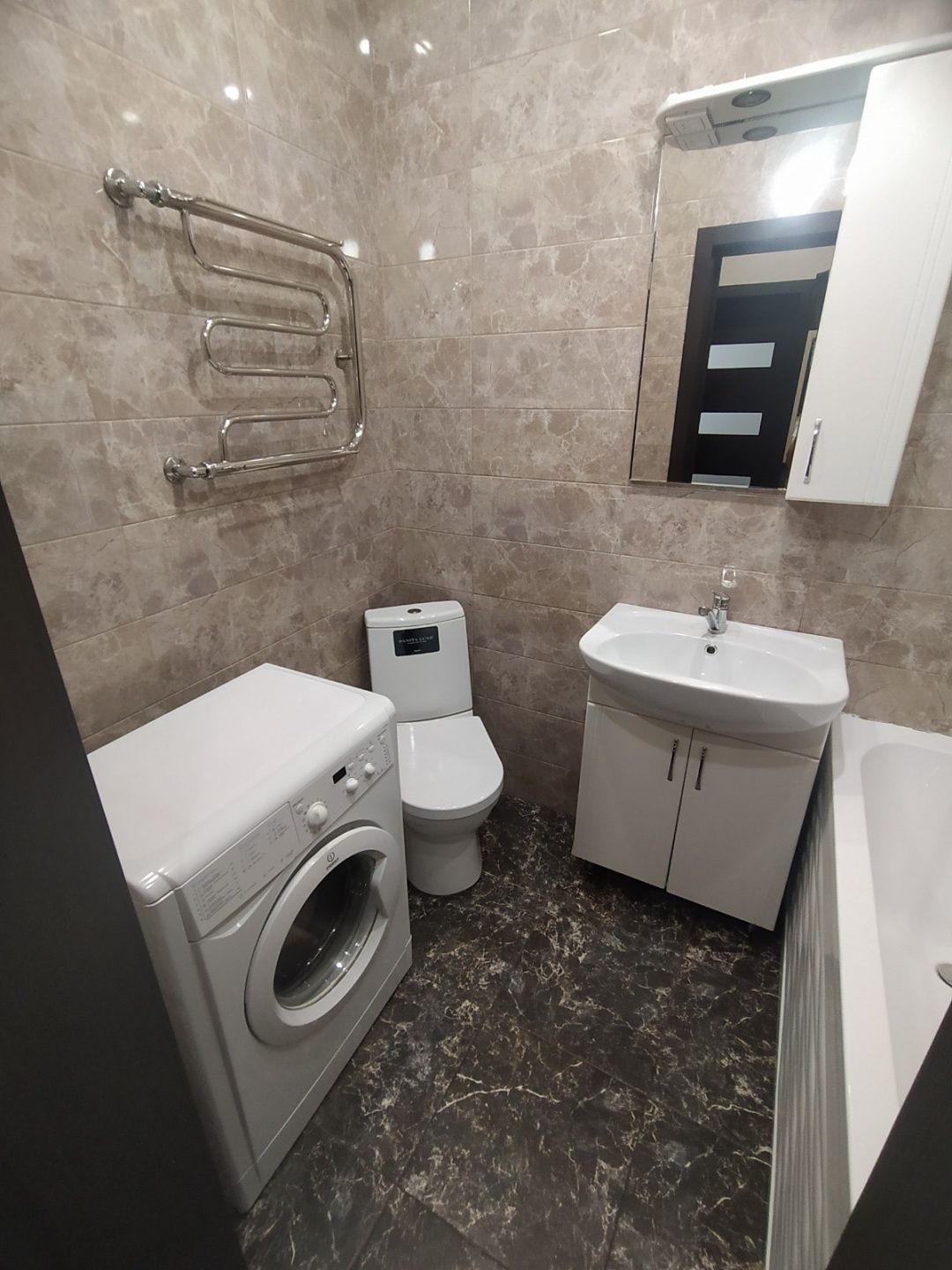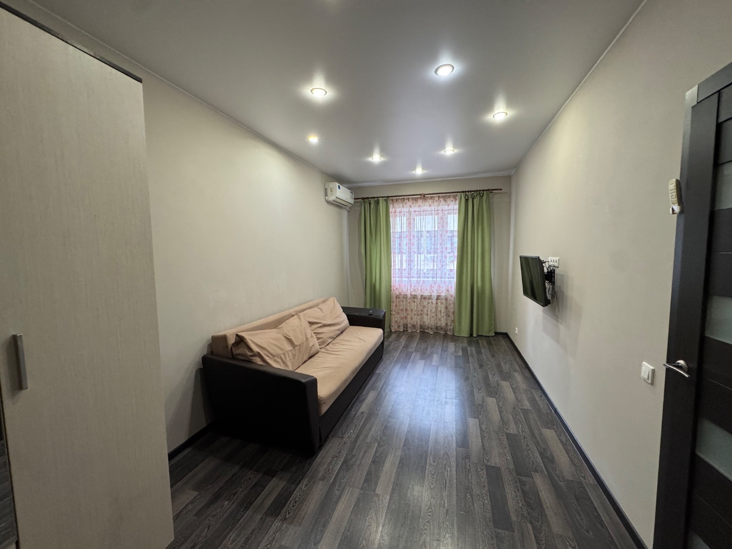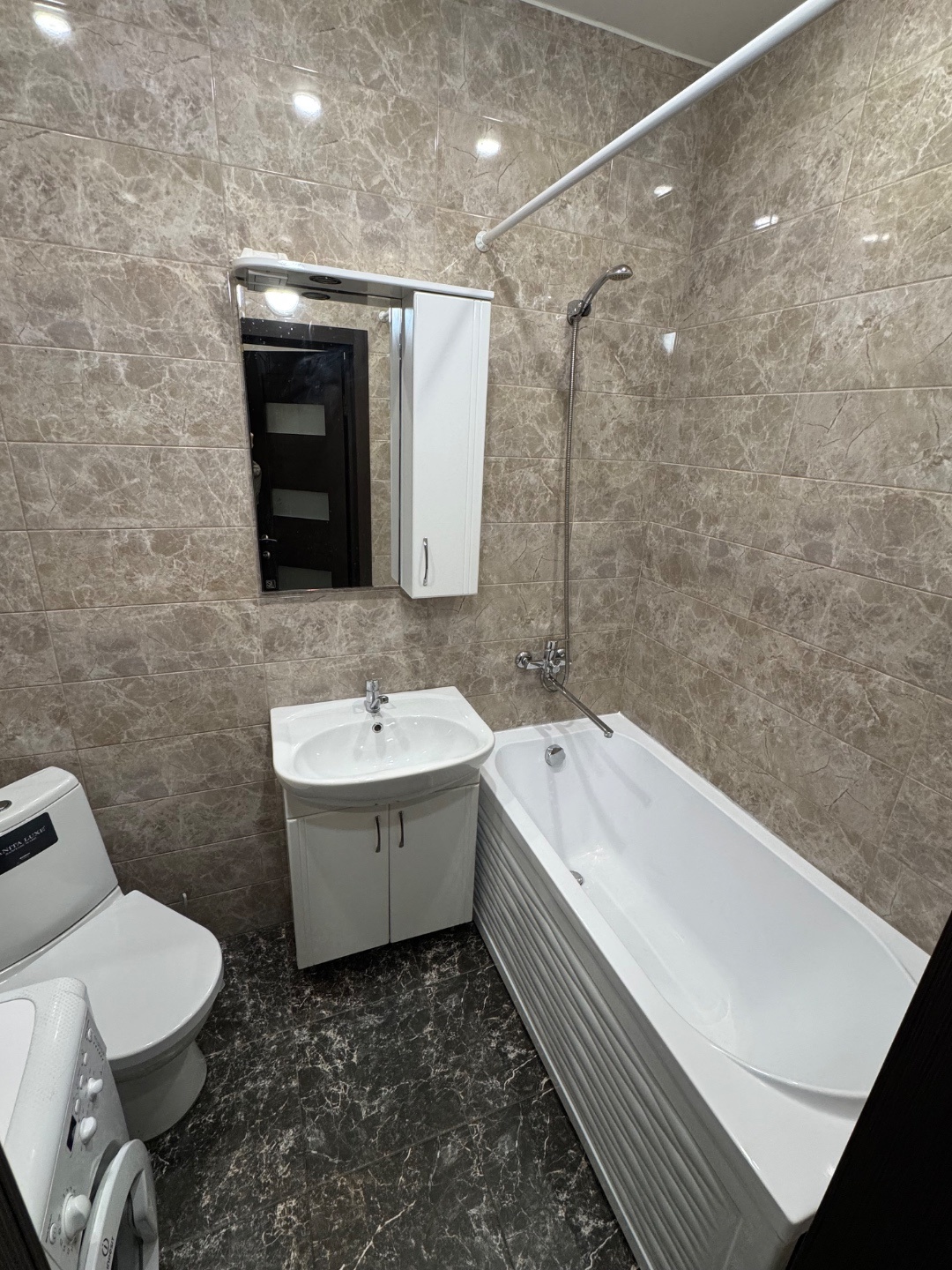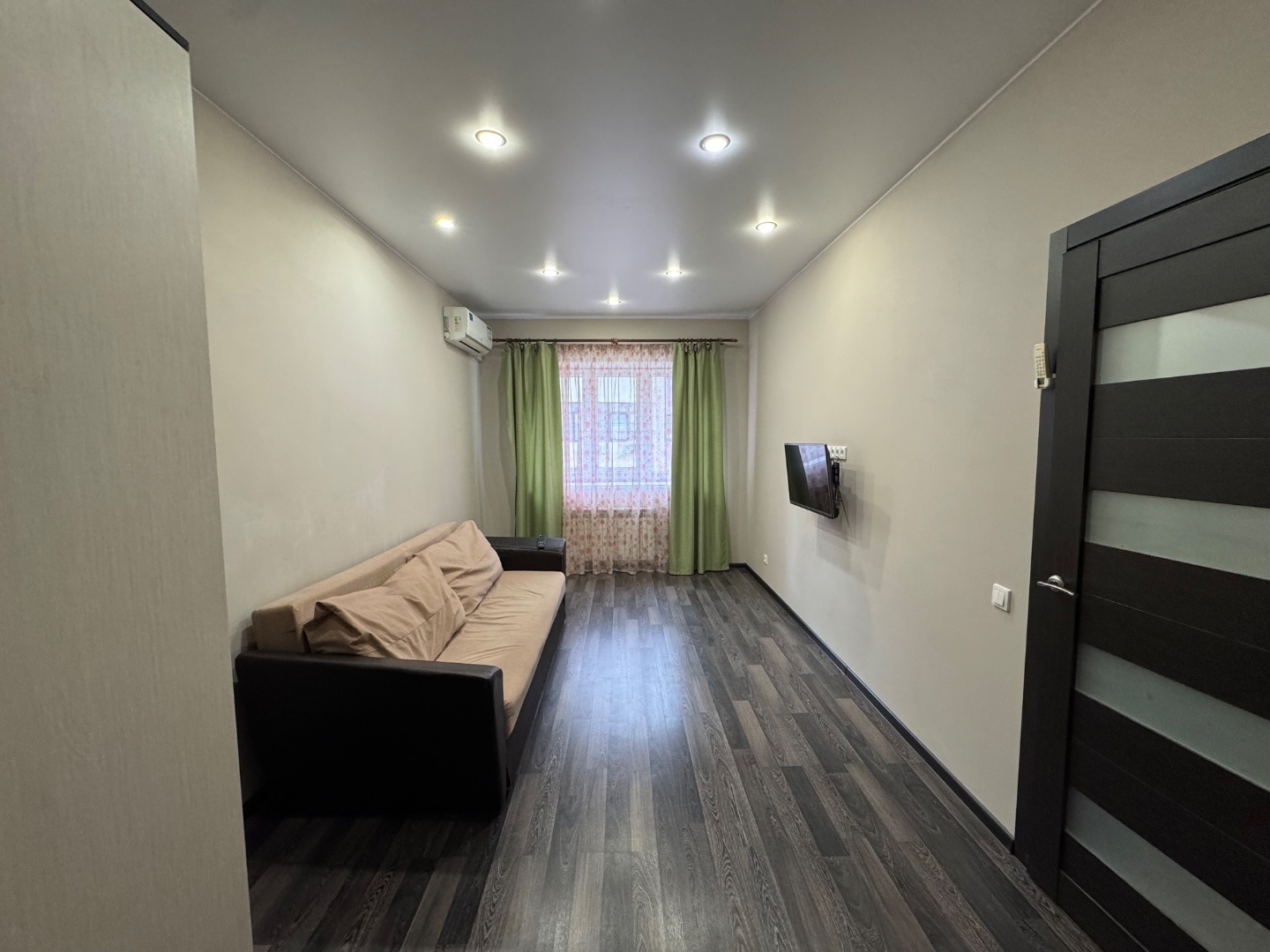 Квартира находится в новом, чистом спальном районе. Кирпичный 5-ти этажный дом расположен на расстоянии 300м по прямой от моря, 5-7 мин. На машине. Во дворе проблем с парковкой нет.