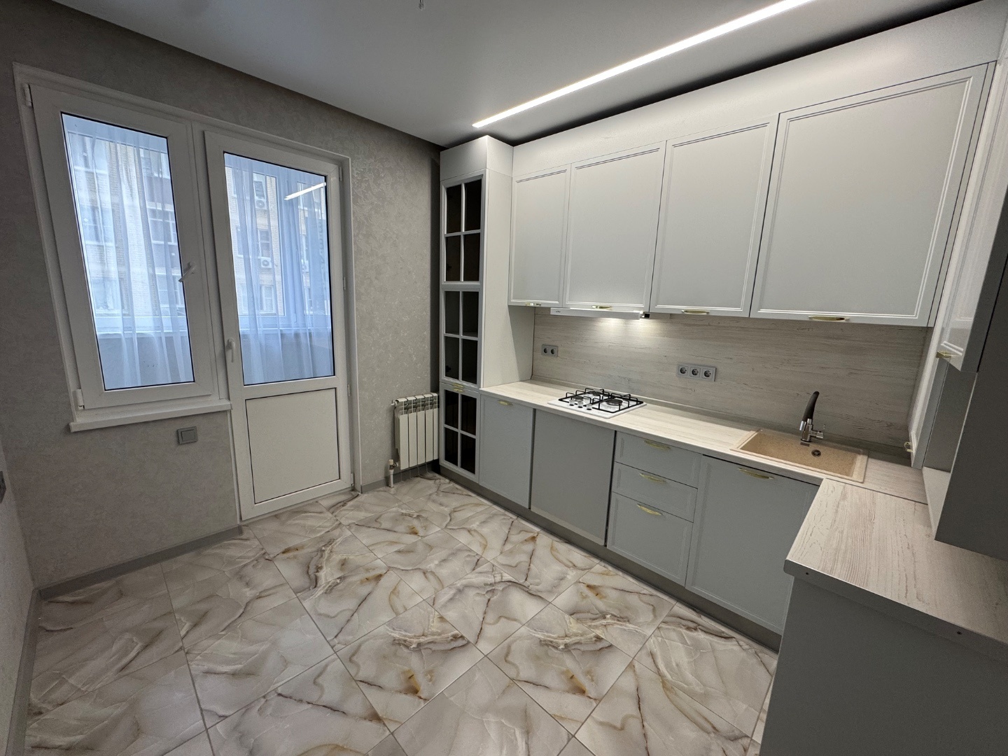 Сделаны теплые полы в санузле, кухне и лоджии.
