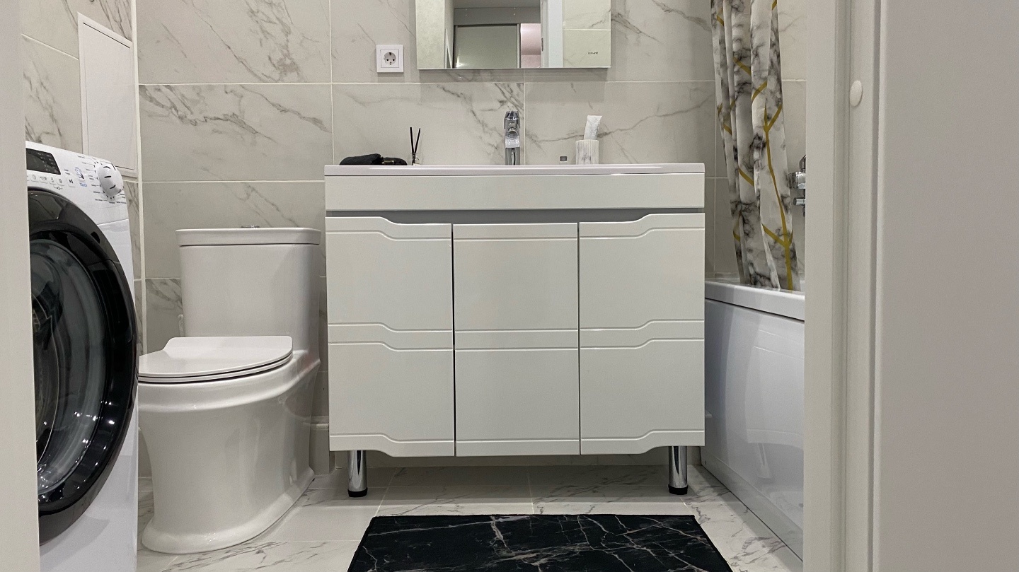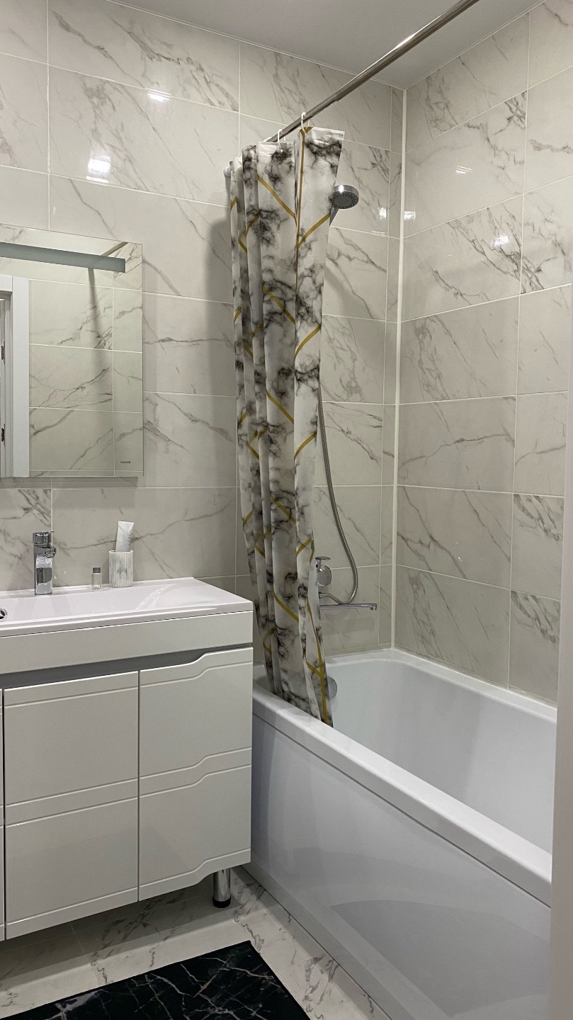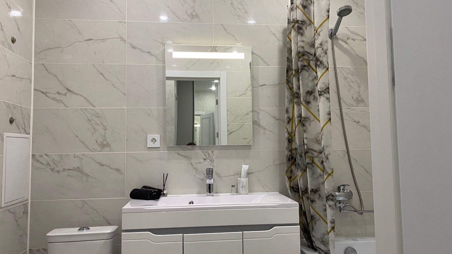 В комнате установлен кондиционер и вместительный шкаф. Санузел совмещенный, выполнен в светлых тонах с качественной плиткой. В квартире всё остается новому собственнику.