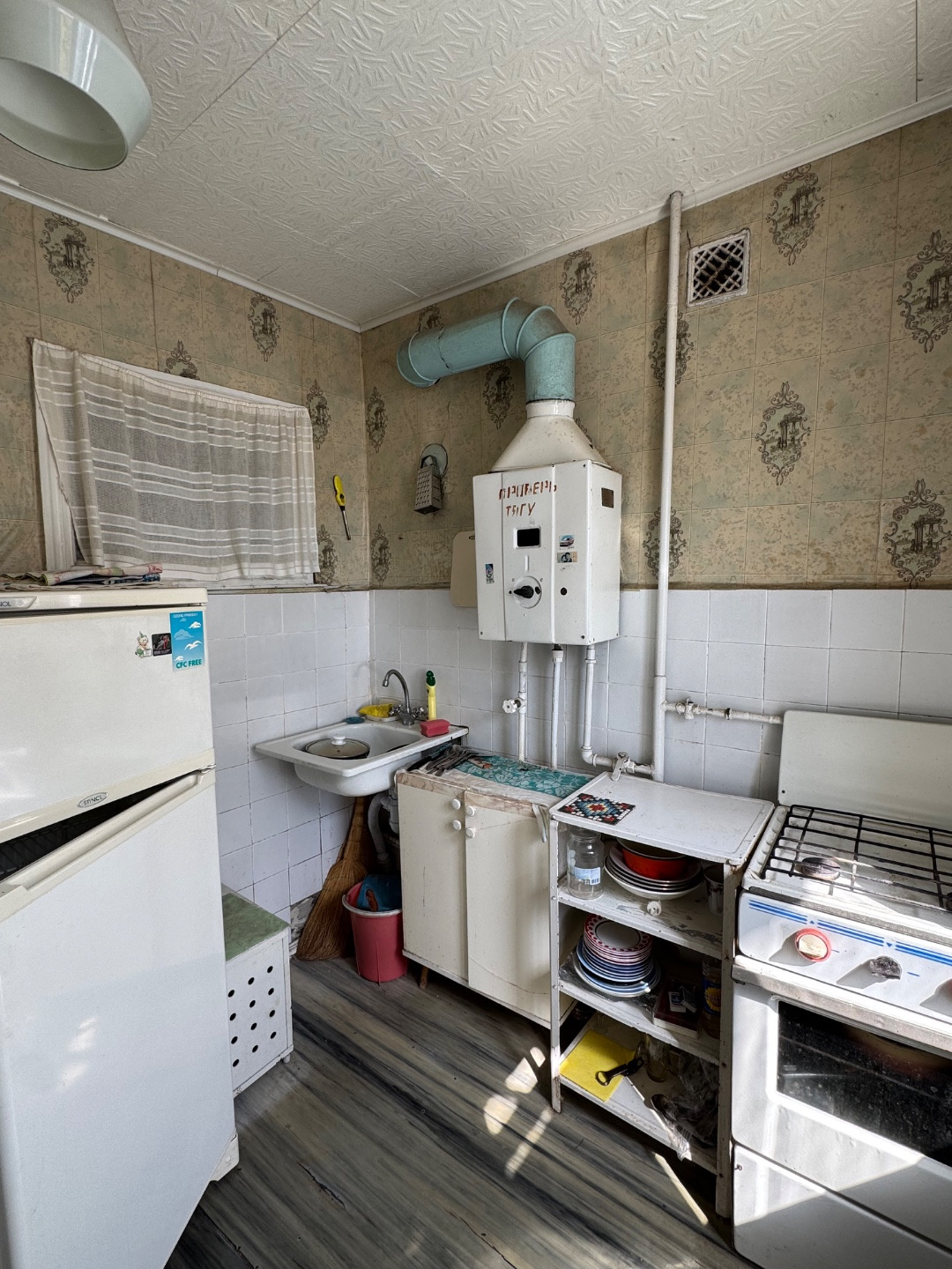 Газовый котел, на горячую воду. Квартира под ремонт. Ссылка на объявление: https://rian-anapa.ru/sale/saleapartments/181026