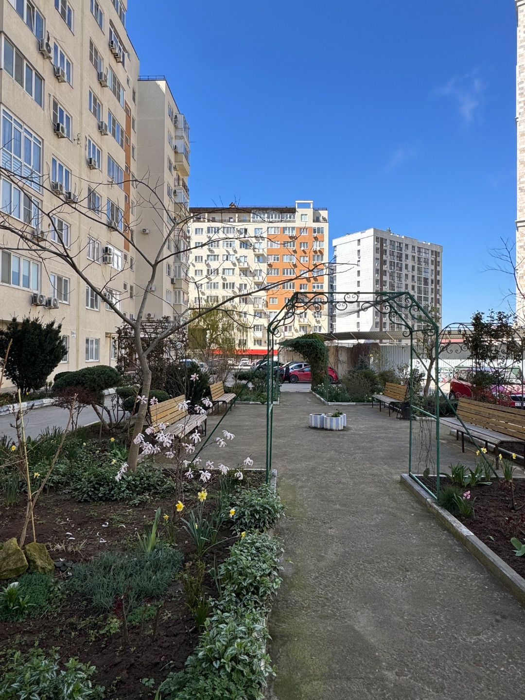 Удачное расположение ЖК, практически во дворе, за калиткой Восточный рынок. Во дворе множество продуктовых магазинов: Пятерочка, Магнит, мясной, аптека, пункты выдачи Wildberries и Ozon, салоны красоты.