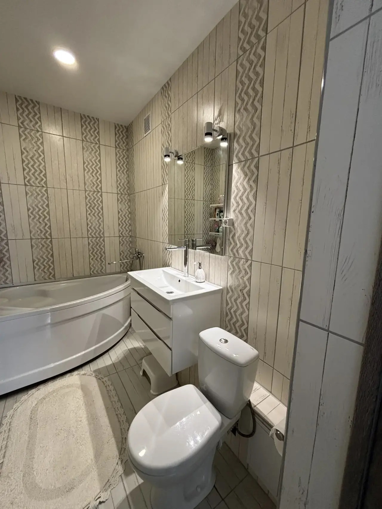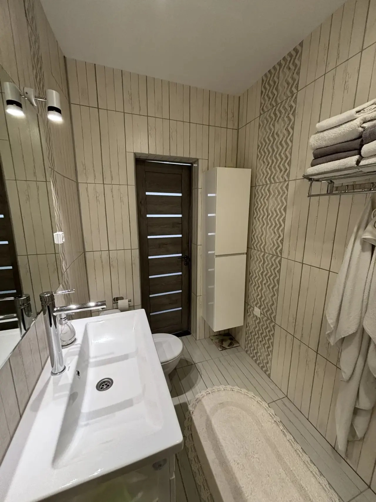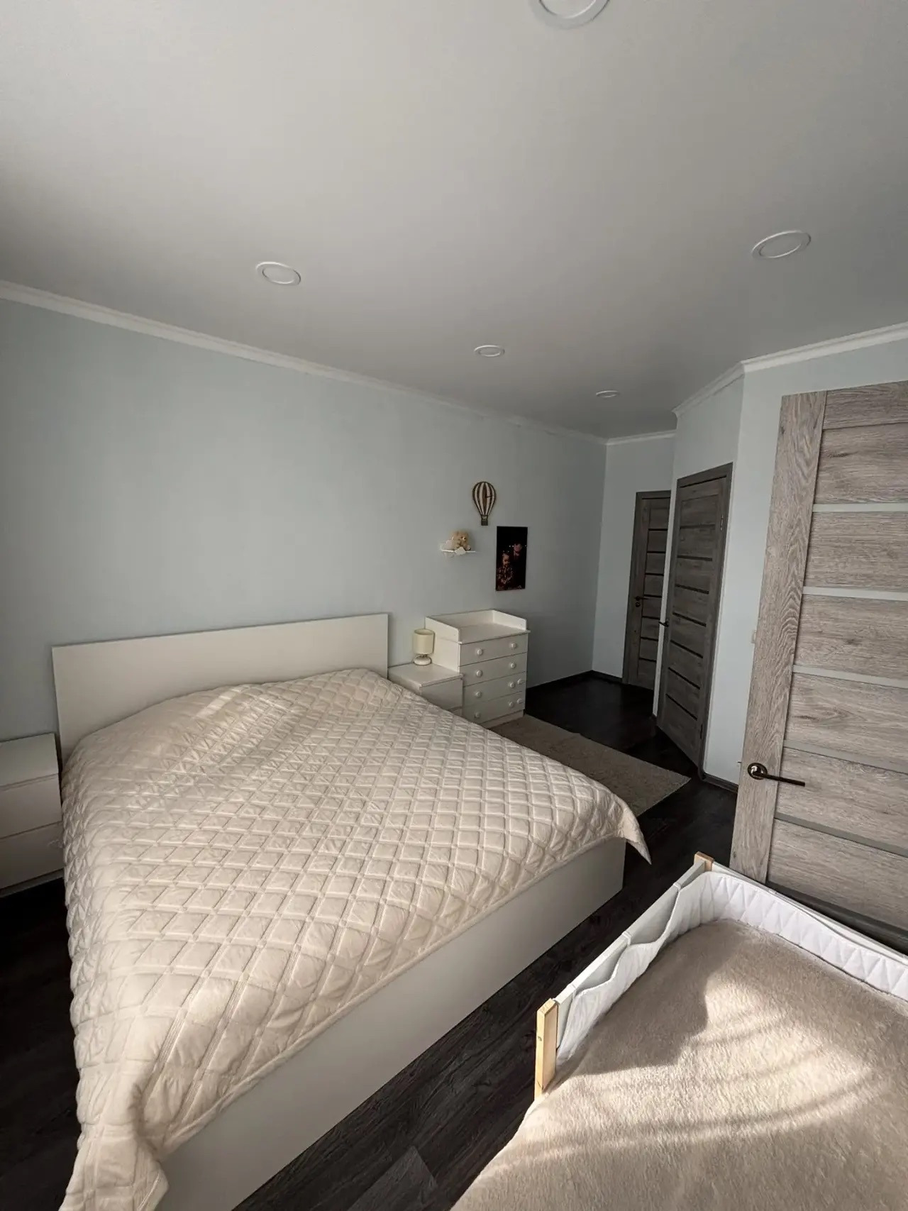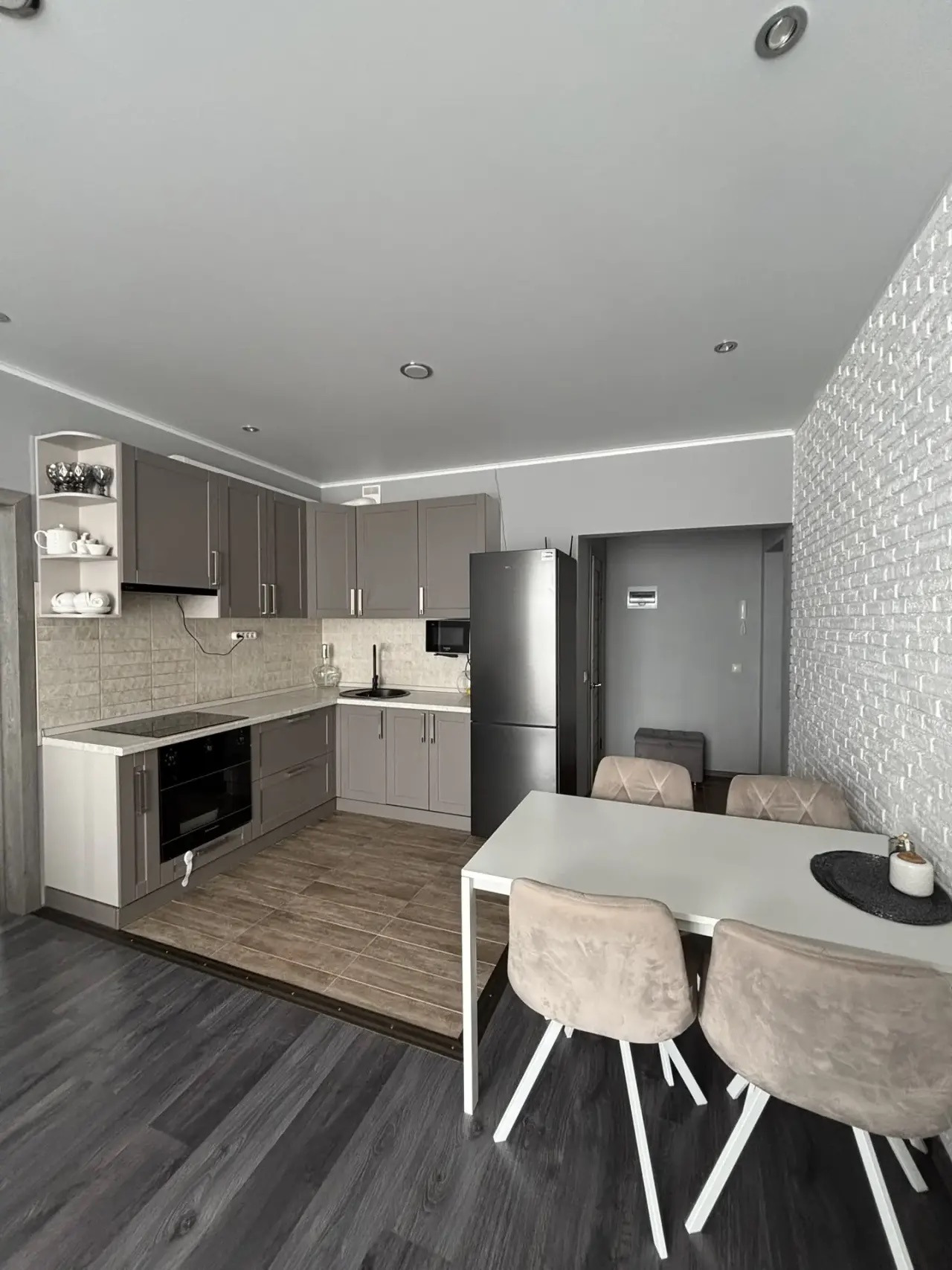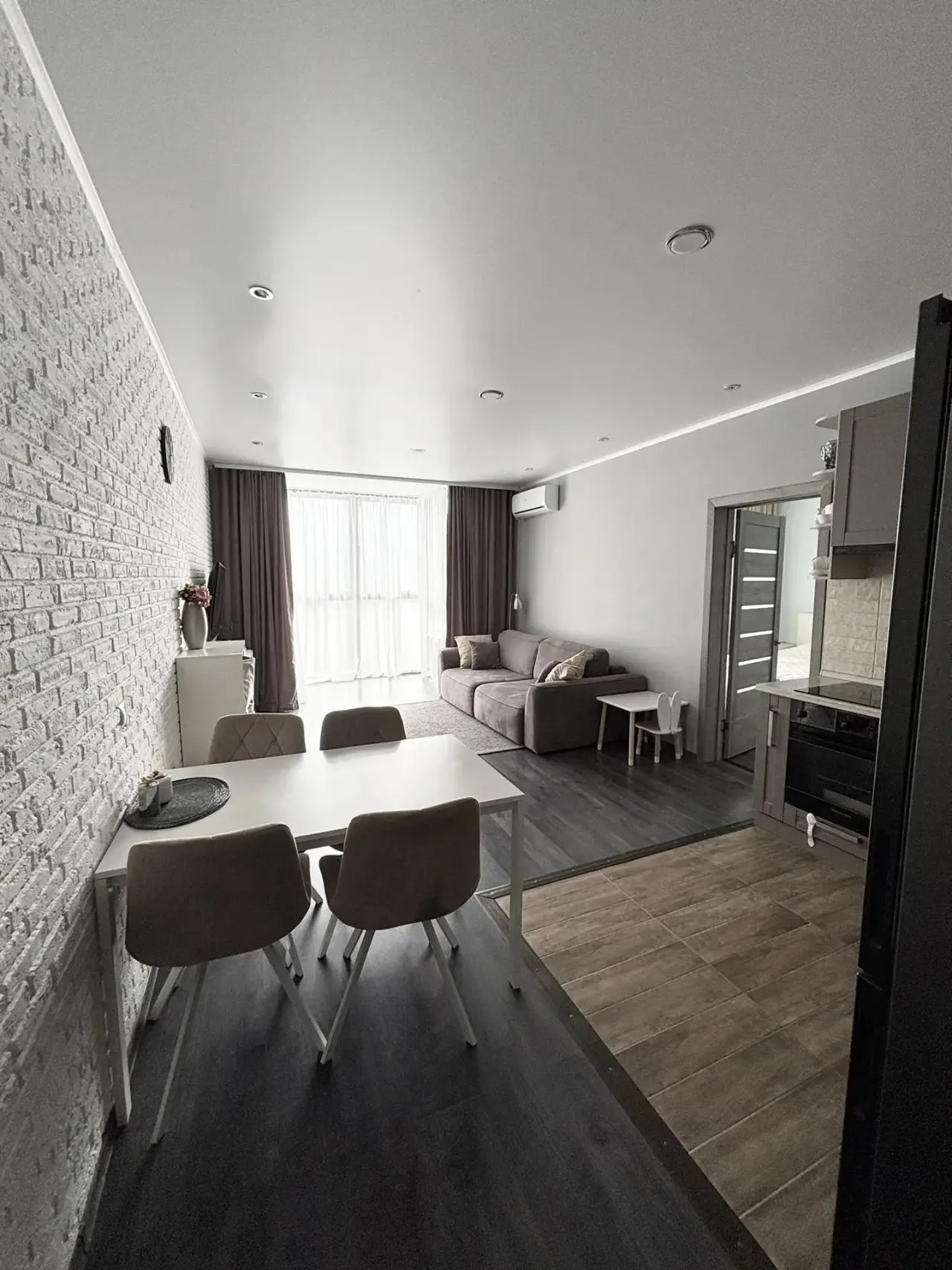 Выполнен евроремонт. Удобная планировка, включает в себя две уютные комнаты и просторный совмещенный санузел.