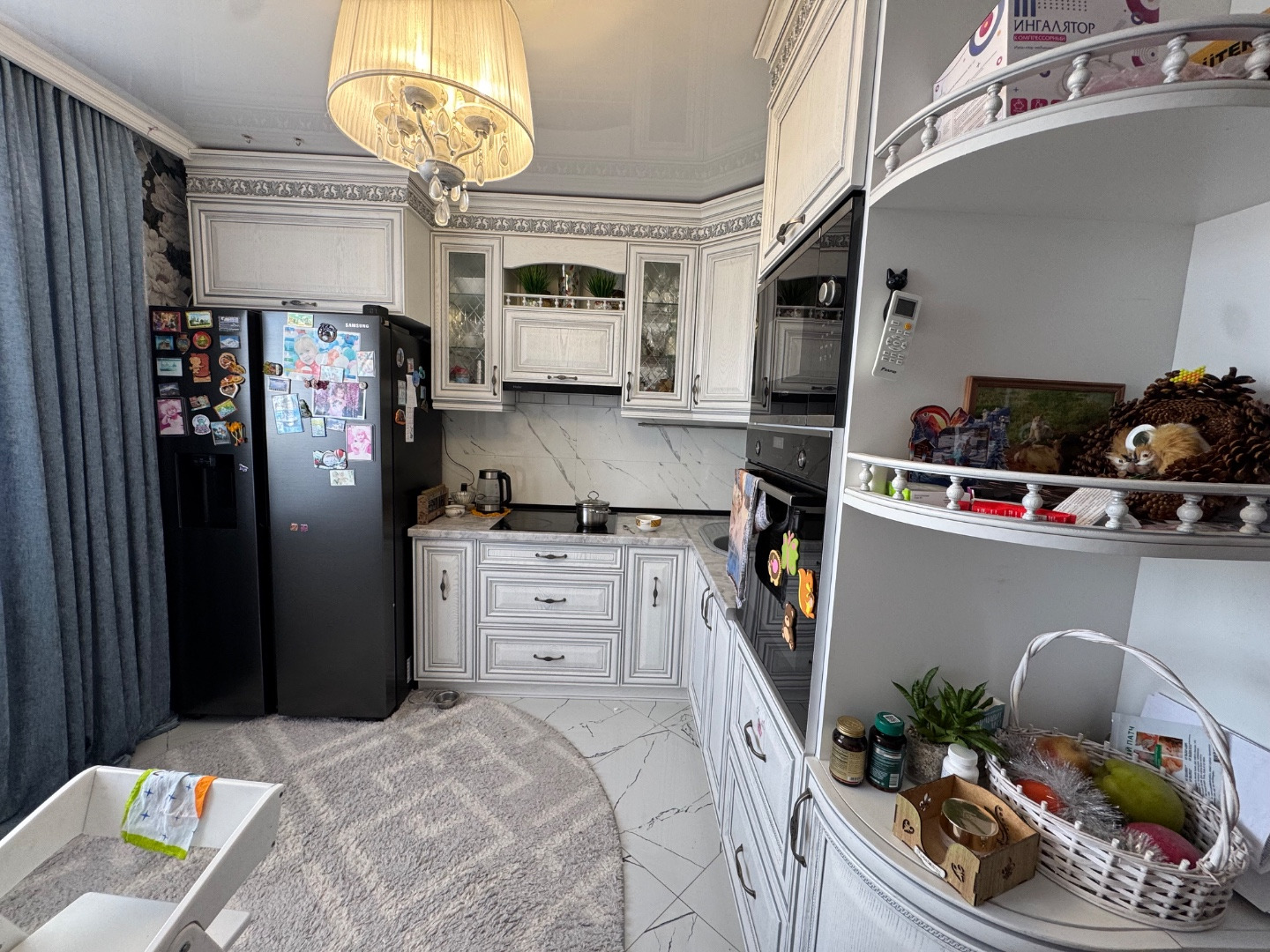 В квартире сделан качественный ремонт с дорогими материалами: в комнатах кварц виниловый ламинат, кухня и прихожая - плитка на полу. Немецкая сантехника в санузлах.