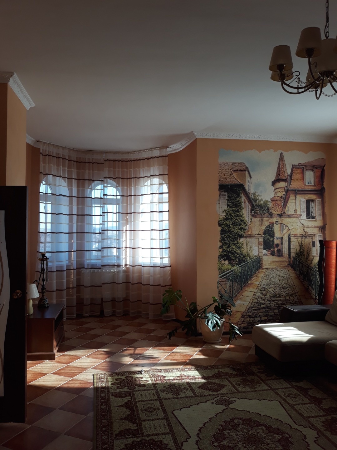 - 2 этаж: каминный зал 50,4 кв.м., камин действующий, красиво облицован. В зале эркеры, на стене фреска, стены - венецианская штукатурка, пол - итальянская плитка.